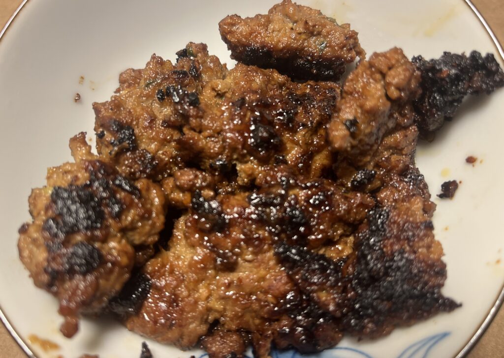 This is an interesting way to get bulgogi in a skillet. It is adapted from Kassie Yeung’s book Bad B*tch In The Kitchen and will serve about 4 and takes about 30 minutes, although I made the meat mixture a few hours in advance to further meld the flavors and stored it in the refrigerator.